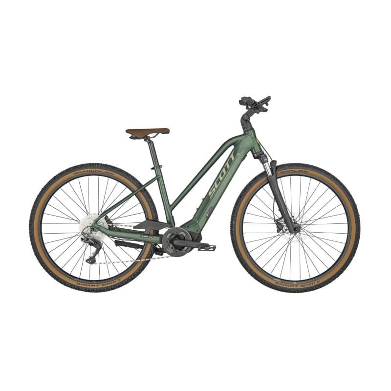 Les roues de 28 pouces du Scott Sub Cross eRIDE 10 Lady offrent une grande stabilité. Elles sont équipées de pneus tout-terrain, conçus pour une adhérence optimale sur tous types de surfaces. Ces pneus permettent de rouler confortablement sur le bitume, les graviers ou les chemins boueux.