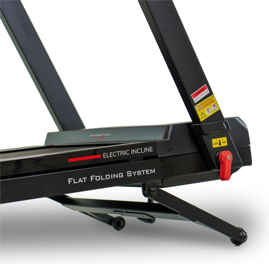 L’un des points forts du Tapis de course G6405 Nyman Plus est son design ultra-pliable. En quelques gestes simples, le tapis se replie pour occuper un espace minimal, idéal pour ceux qui vivent dans des appartements ou des maisons avec peu de place. Le système de pliage hydraulique permet de ranger l’appareil facilement sous un lit ou contre un mur, sans effort.