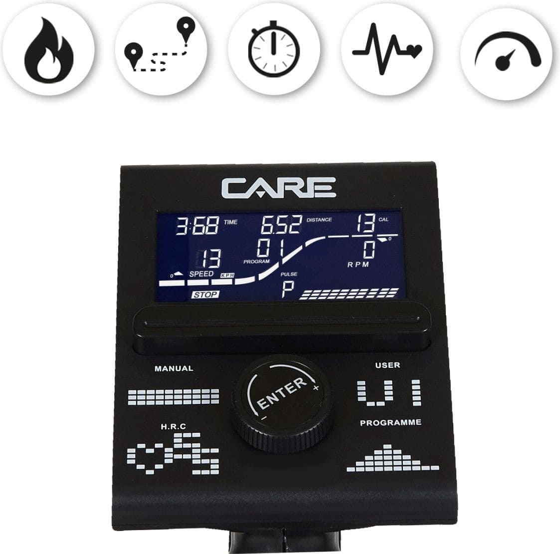 Le vélo CV-535-2 est doté d’une console avec 10 fonctions intégrées.