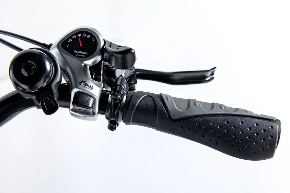 Le vélo dispose d’une transmission Shimano à 7 vitesses, permettant une adaptation facile aux différentes conditions de route et aux inclinaisons variées. Les composants Shimano sont réputés pour leur fiabilité et leur précision, garantissant des changements de vitesse fluides et une performance optimale.